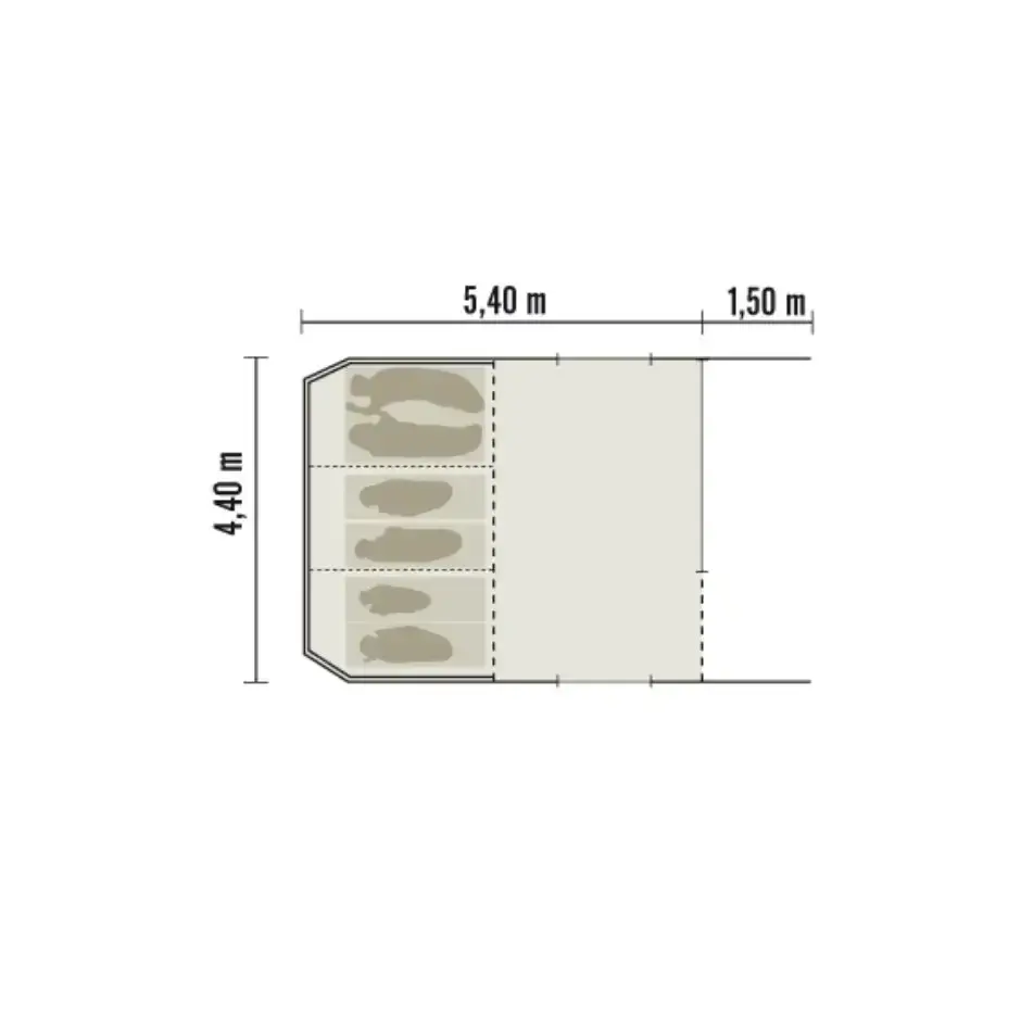 The Cabanon Awaya 440 Tent sleeps up to 6 Cotton Canvas 59kg 690 x 440cm Spacious Tunnel Tent is Hand made in France by a Team of skilled Machinists since 1959. 235 g/m² Cotton walls and 290 g/m² Roof with an Aluminium Frame. The Cabanon Away 440 Tent features a sewn in groundsheet. This spacious Tunnel Tent with 3 Large Bedrooms and a generous living space also features a roll up front panel. With storage compartments sewn into the canvas zipped pole sleeves too!