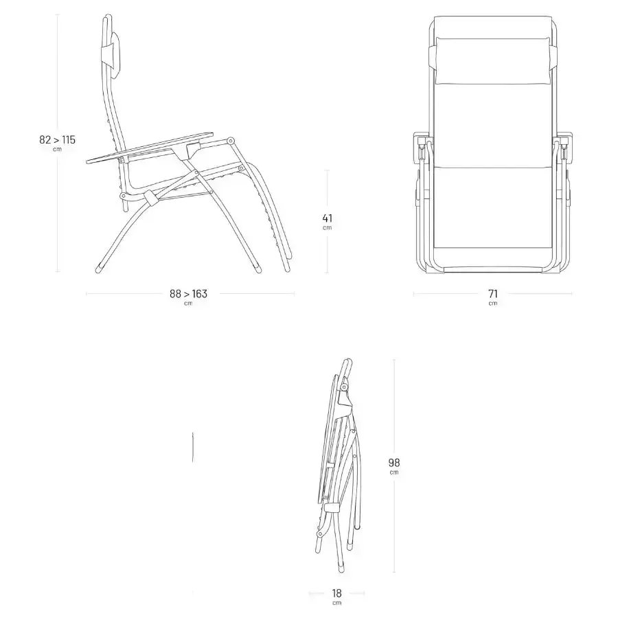 This Lafuma Futura AirComfort® Reclining chair LFM3124 Coral Blue 6893 AirComfort® Padded Cushioning Multi Position lounger including Zero Gravity position for optimal relaxation. Made in France. With a HLE 20Ø steel tubing frame for strength Polyester Paint for UV resistance. The Lafuma Futura Air Comfort Reclinging Chair is light , sturdy , foldable and practical - a 'vintage' style that never goes out of fashion. Featurung removable adjustable headrest - the Lafuma Patented Clip system with elastomere clips ensures firmer comfort and very good back support , it also allows the canvas to be remove The AirComfort® 3 layer Cushioning breathable , removable and replacable Fabric is UV resistant too!