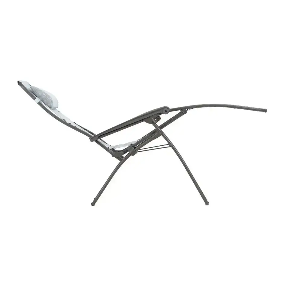This Lafuma RSXA Batyline® ISO relaxation chair LFM2060_9711 in Ciel (Blue) Multi Position lounger including Zero Gravity position for optimal relaxation. Made in France, with a high tensile 20Ø steel tubing frame for strength , monomaterial Polypropylene. arm rests Elastic Lacing System that can be replaced. The Lafuma RSXA Batyline® ISO Ciel is made from Environmentally friendly materials is light , sturdy , foldable and practical - a 'vintage' style that never goes out of fashion. Featurung ergonomic adjustable and removable headrest , The Batylne® ISO Fabric (open weave = 1 warp / 1 weft thread) is UV resistant , quick drying and easy to clean with soap and water and great for outdoor use.